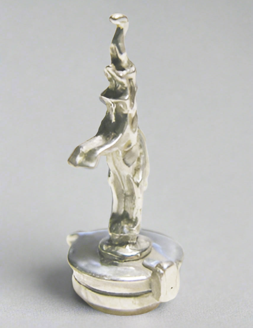 The MMLtd 1:8 scale Prancing Elephant Mascot was sculpted by Jill A. Kenike, a former designer for Tiffany and Co. Because our Prancing Elephant Mascot is intended to adorn the radiator of Pocher Bugattis, we asked Ms. Kenike to trim the pachyderm down a bit to match the svelt lines of the zoomy Profile and Suprofile Bugattis. Our Prancing Elephant Mascot is balancing on top of our new Bugatti Radiator Cap which features the correct profile and simulated quick-release latch of the prototype. Now the Pocher Bugatti can have both a correct radiator cap and a link with the artistic legend that is Bugatti.