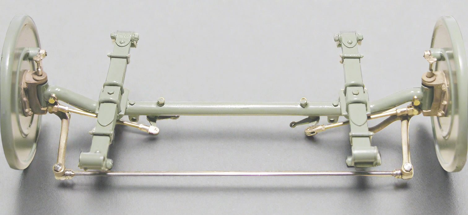 Under development for almost a year, the Alfa Steering and Front Brake Assembly is clearly one of our most ambitious projects ever undertaken. Each part in this Assembly started as a hand built prototype created on our workbenches. They are cast in bronze and then undergo a final preparation which includes drilling and tapping. The Steering Arms are a direct replacement for the Pocher stamped metal pieces and attach using the Pocher bolts. The Brake Arm is tapped and attaches with the 2 mm threaded rods. And, the Brake Levers utilize the tapped 0-80 hole in the MML Axle. The 1/16" brass rod (provided in the Kit) fits snuggly in the end of our Clevises (a dab of our Bondini glue is recommended).